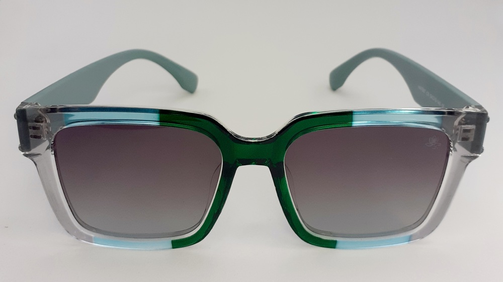 Eleve sua expressão visual com uma peça que desafia o comum. Nossa nova armação em acetato transparente une a energia do Verde Vibrante, a leveza do Azul Claro e a sofisticação do Cinza ao toque moderno das hastes em azul fosco. Design autoral para quem faz do acessório o protagonista do look.